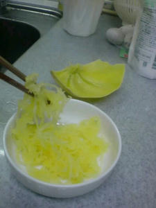 茹で途中で糸状になってきている